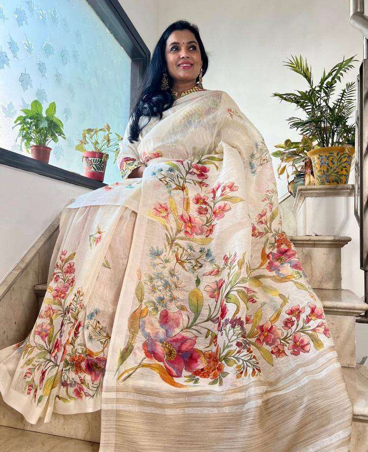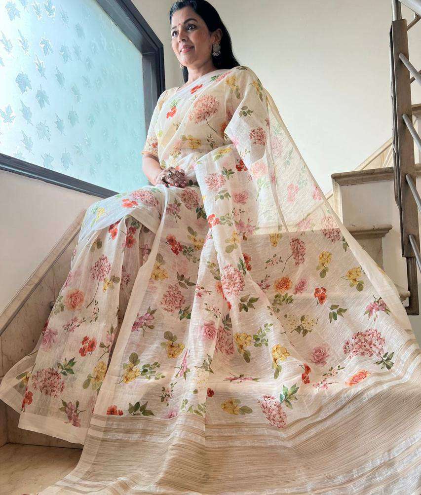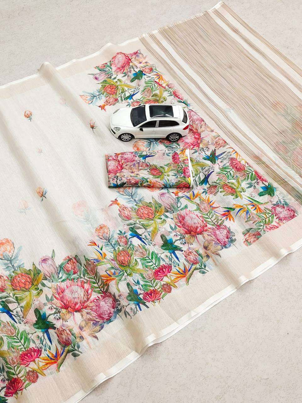 CATLOGUE NO – MG273 Saree Fabric – Plain Linen Work – Digital Print. Saree length – 6.30 Meter (With Digital Blouse) Blouse Fabric – Plain Linen with Digital print single also ava |