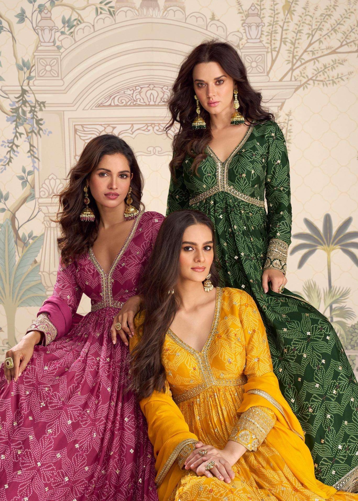 BANDHAN (3 PCS) FABRIC – PREMIUM REAL CHINON SILK ( FESTIVE LOOK FRONT AND BACK EMBROIDERED DIGITAL CHİNON SILK GOWN WITH DUPATTA) Single Available |