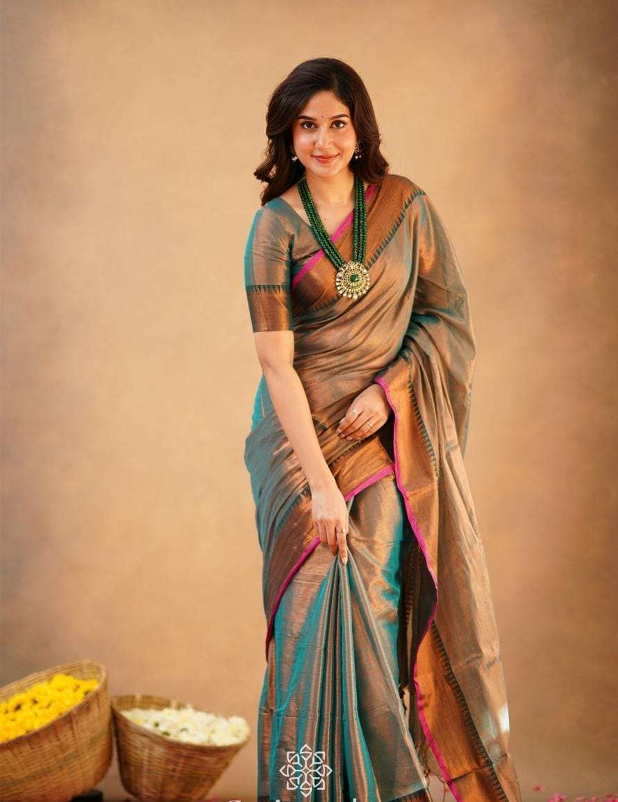 Rudraksh_RESTOCK TEMPLE RAGA TISSUE EXCLUSIVE ALL SEASONS COLLECTION SUPER SOFT & LIGHT WEIGHT SUMMER FRIENDLY HANDLOOM COTTON SAREE