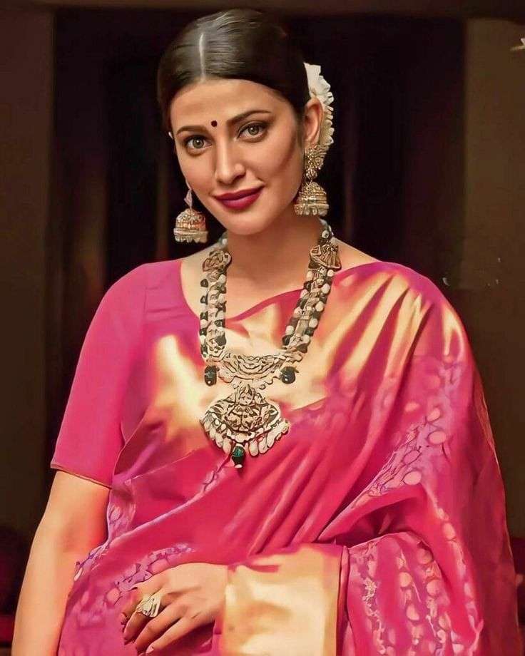 Title SHRUTI HASSAN INSPIRED KANJIVARAM COLLECTION BANARASI WOVEN SOFT KATAAN SILK FABRIC PARTY WEAR AND WEEDING WEAR SAREE