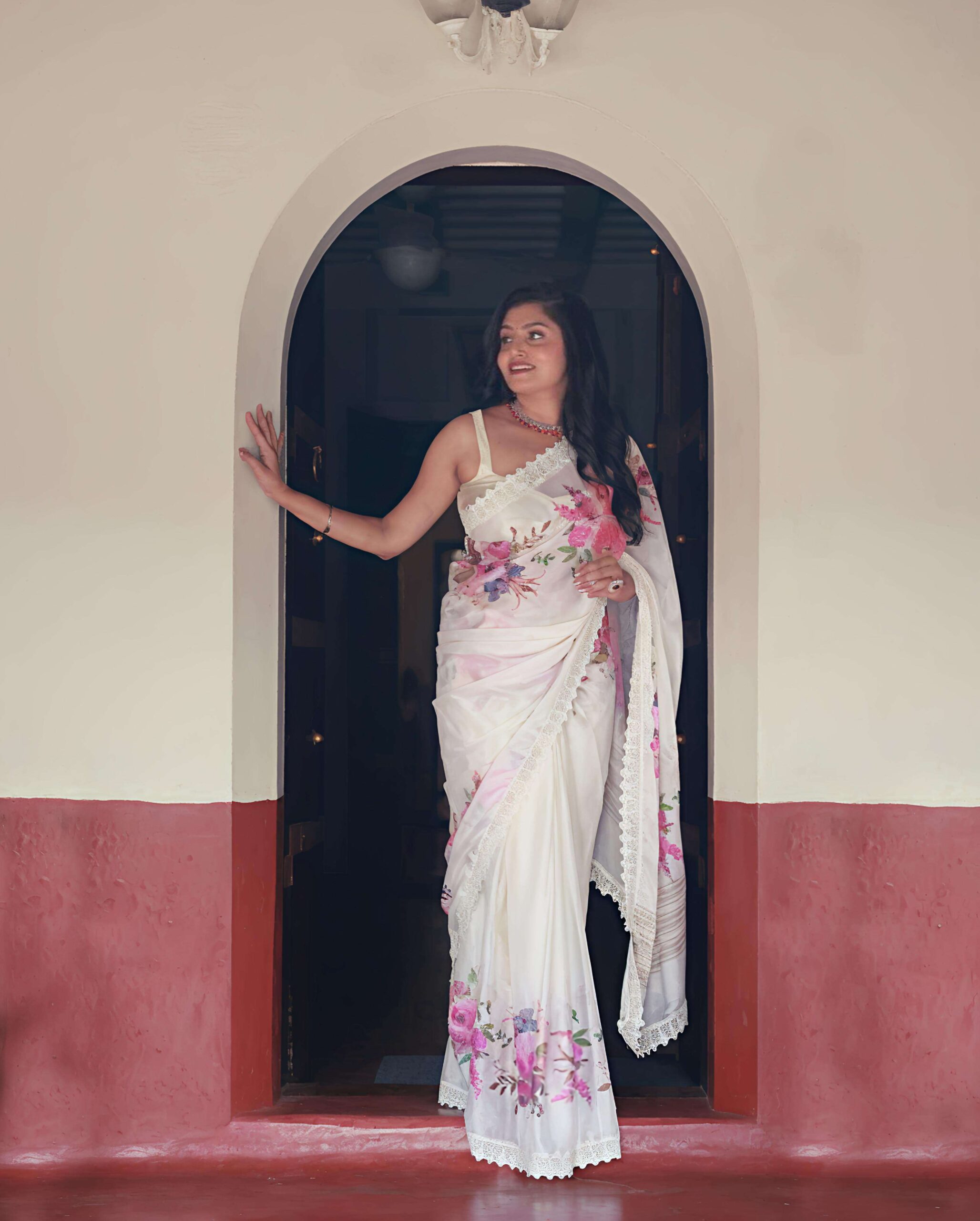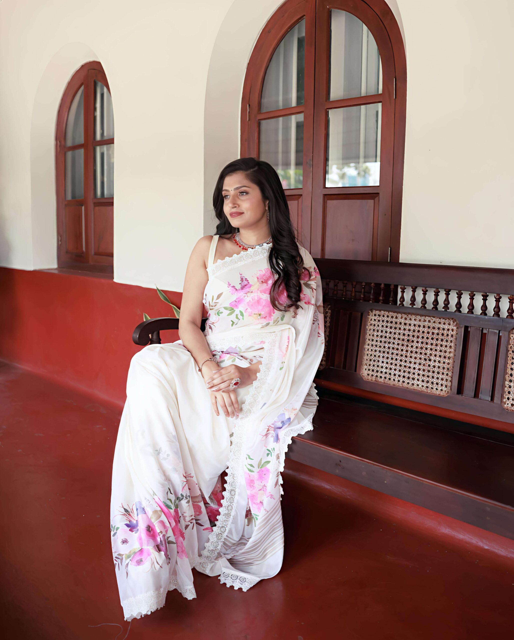 🥻 Saree Fabric: Heavy  blooming marshmallow saree with digital print on allover saree with PERFECTLY MATCHED blouse piece and ciply lace allover saree